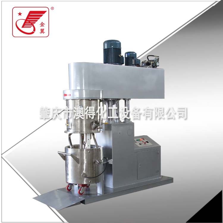 低(di)速部件和高速分(fen)散部件,低速攪拌(ban)部件采用行星齒(chǐ)輪傳動,攪拌漿攪(jiao)拌器在筒體同時(shi)公轉并自轉,可實(shí)現🈲抽真空、加熱、冷(leng)卻,配多個攪拌桶(tǒng)可一機多桶操作(zuo),匹配壓料機讓出(chū)料✊更方便。